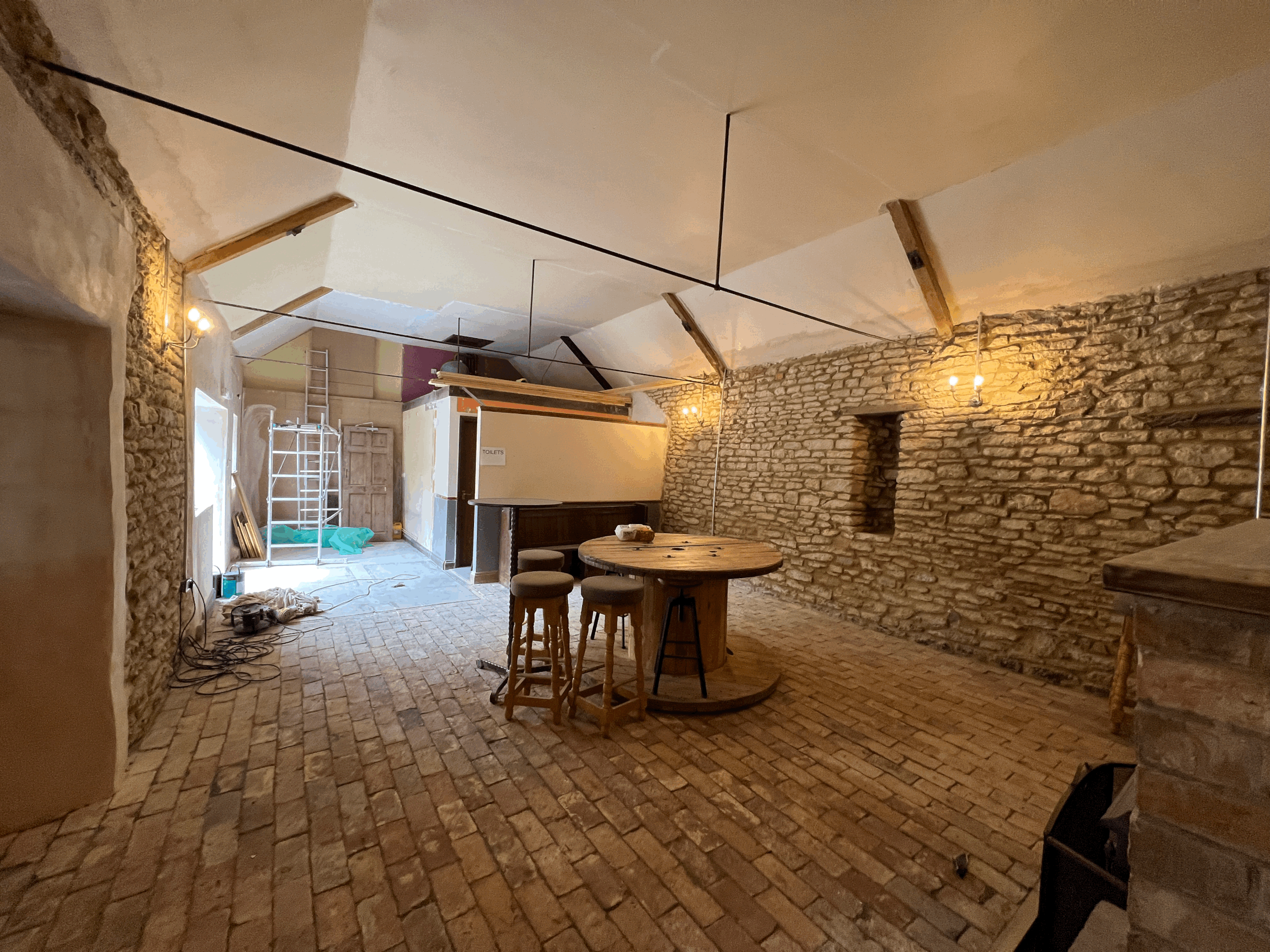The barn is available for private bookings alongside the tent. The location benefits from its own toilet facilities, beautiful stone walls, fireplaces and access to the garden and tent.